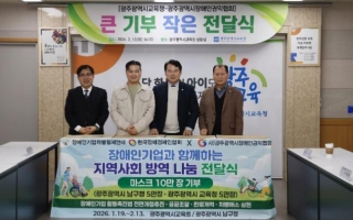 [광주시교육청] 광주시장애인권익협회서 마스크 기부 받아[대한교육방송] 광주시교육청(교육감 이정선)은 10일 광주광역시장애인권익협회가 마스크 5만장을 기부했다고 밝혔다. 광주시장애인권익협회는 자발적인 나눔을 통해 안전한 교육환경을 조성…