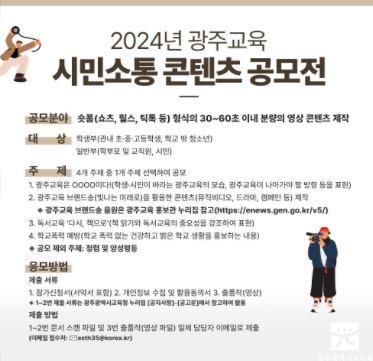시교육청은 이번 공모를 통해 광주교육 정책에 대한 교육가족과 시민들의 관심이 높아지고, 참신한 콘텐츠가 발굴될 것으로 기대하고 있다.