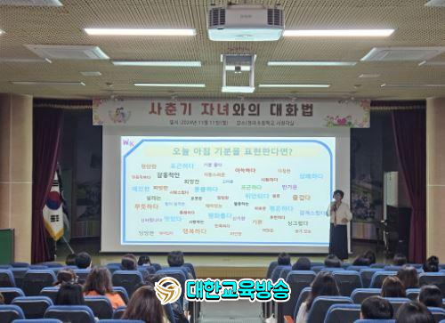 이날 강의(강사 최해옥)는 알파세대와 Z세대 자녀 이해하기, 사춘기 자녀와 함께 성장하는 부모, 천사를 깨우는 버츄보석단어 활용을 통해 자녀의 심리와 감정에 대한 이해 등의 내용으로 이루어졌다.