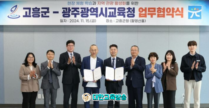 광주시교육청과 고흥군은 지난 15일 고흥군청에서 광주시교육청 최승복 부교육감, 고흥군 조대정 부군수, 광주학생해양수련원 김필모 원장 등이 참석한 가운데 ‘광주 학생 현장체험학습 및 고흥 지역 관광 활성화’를 위한 업무협약을 체결했다.