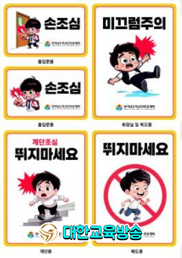 특히, ▲ 출입문 손 끼임 ▲ 화장실 및 정수기 인근 미끄러짐 ▲ 계단 및 복도의 넘어짐 등 학교 안에서 반복적으로 발생하는 사례 위주로 제작되어 안전사고 예방에 큰 효과가 기대된다.