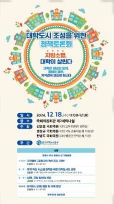 이번 토론회는 혁신도시와 기업도시를 잇는 대학도시의 개념을 제시하며, 지방 대학 위기 및 청년 실업, 주거 불안의 해결책으로서의 역할을 논의한다. 대학 내 기업 유치와 고품질 주거시설 확충에 대한 방안도 다룬다.