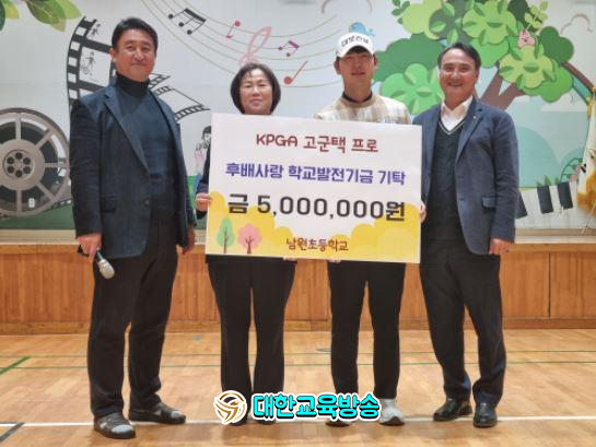 고 프로는 골프 강의 후 학교발전기금으로 500만원을 기탁하여 후배들에게 실질적 지원과 학교의 발전을 위한 따뜻한 마음을 전하였으며 개교 100주년 역사관을 둘러본 후 방명록에 애정 어린 메시지를 남기고 후배들이 역사와 전통을 자랑하는 남원초등학교를 더욱 빛내줄 것을 당부하였다.