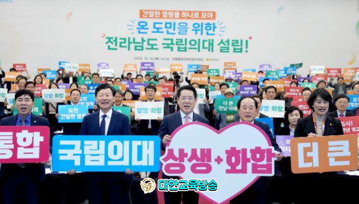 김영록 전남도지사는 “도민의 건강권과 생명권을 확보하고 지역 의료 완결성을 위해 전남에 의대 설립이 필요하다”며 “온 도민의 역량을 총 결집해 통합의대 설립을 반드시 이뤄낼 것”이라고 강조했다.