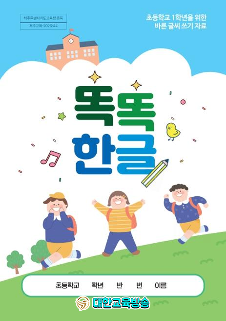 ‘똑똑 한글’은 1학년 1학기 국어 교과서와 연계하여 자·모음과 받침 있는 글자에 대한 해득과 선 긋기부터 자형에 맞는 바른 글씨 쓰기까지 체계적인 한글 교육을 지도할 수 있도록 구성되었다.