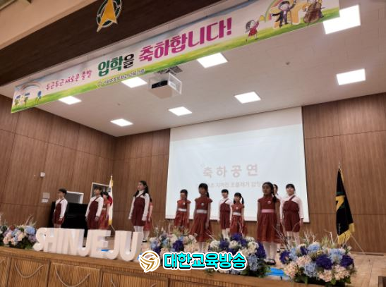 [대한교육방송] 신제주초등학교(교장 강동헌)는 지난 4일‘신제주 지꺼진 코풀레기 합창단’의 제주어 뮤지컬 공연으로 새로운 시작을 맞이하는 입학식에서 유치원생들에게 따뜻한 환영 인사를 건넸다.