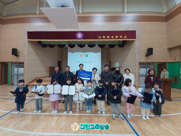 [대한교육방송] 나주북초등학교(교장 최옥희)는 3월 4일, 11명의 신입생을 맞이하며 따뜻한 환영 속에입학식을 개최했다. 입학식에서는 총동문회(회장 이동열)에서 신입생들에게 입학 축하장학금을 지급하며, 새로운 시작을 응원했다.