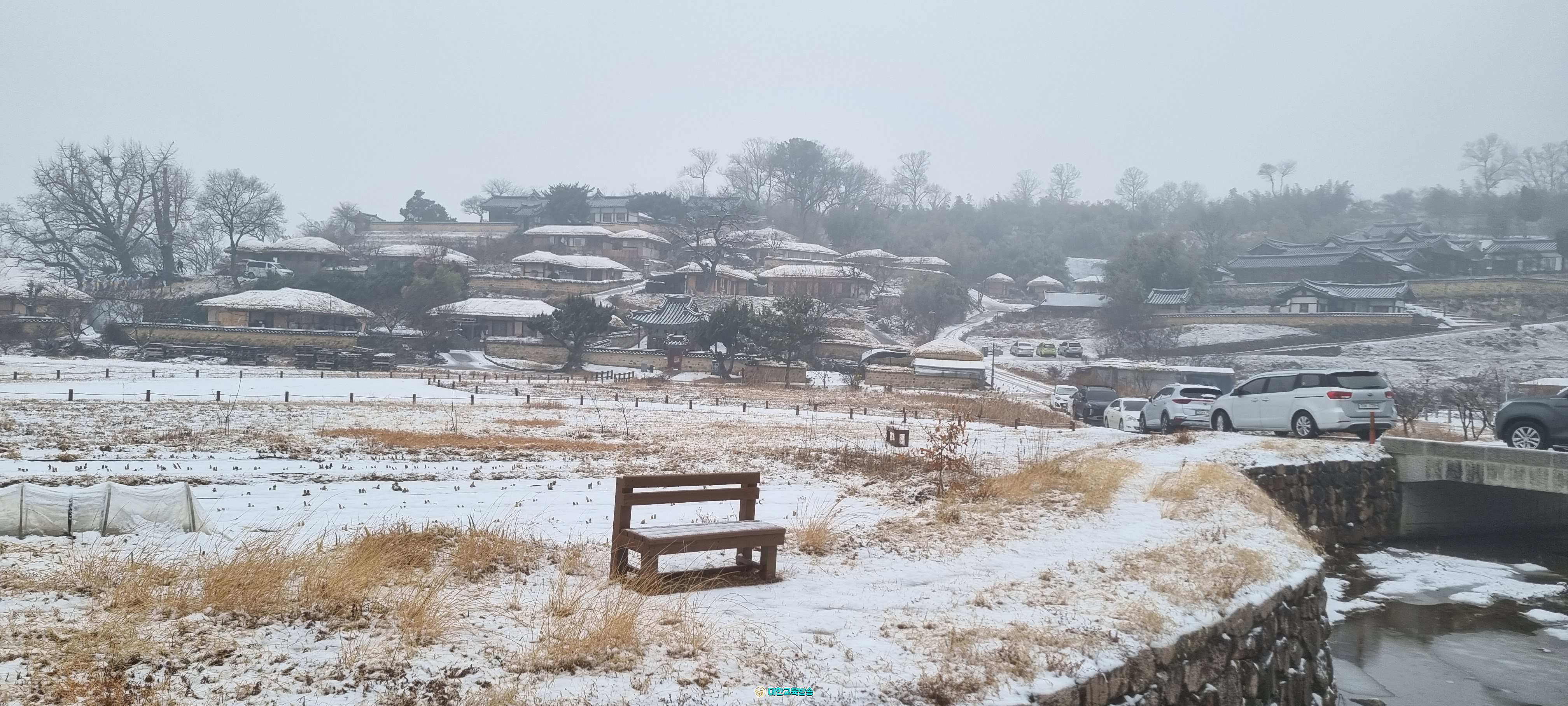 입추가 지났지만, 간밤에 내린 눈으로 산야가 온통 겨울왕국이다. 다행히 새벽부터 내린 비로 차량운행이 그리 어렵지 않았다. 양동마을 주차장에 도착하여 약 10분 걸어 양동마을에 도착했다.