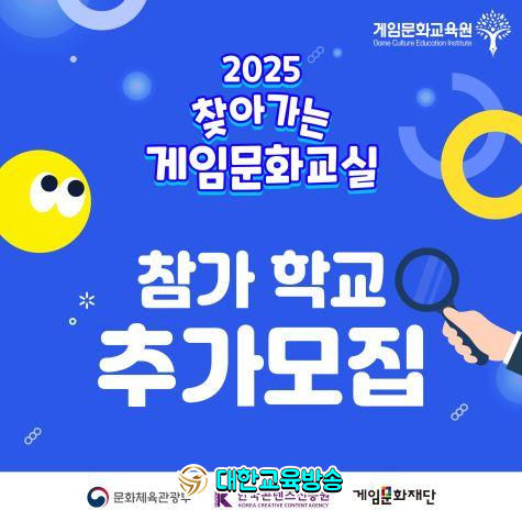 선착순으로 모집하며, 교육 대상 및 지역 안배를 위해 중등학교와 충청(대전·세종·충북·충남), 전라(광주·전북·전남) 소재 학교 및 기관을 우선 모집한다. 관련 문의는 게임문화교육원 유선전화 또는 이메일(gameclass2025@gameculture.or.kr)로 하면 된다.