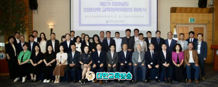 전라남도교육청(교육감 김대중)은 6월 30일 영암 호텔현대 바이 라한에서 ‘제2기 전라남도 민관산학 교육협력위원회’ 위촉식을 열고, 앞으로 2년간 전남교육 발전을 위한 민관산학 협력 과제들을 본격 추진하기로 뜻을 모았다.