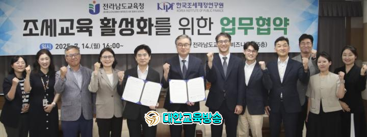 전라남도교육청(교육감 김대중)과 한국조세재정연구원(원장 이 영)은 7월 14일 청사 비즈니스실에서 ‘조세교육 활성화를 위한 업무협약’을 체결하고 전남 학생들이 교실 안에서 조세의 개념을 쉽게 이해하고 실천적으로 배우는 교육 기반을 구축해 나가기로 했다.
