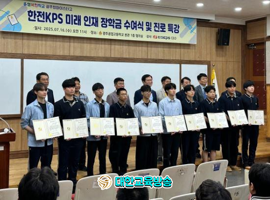 이번 장학금은 한전KPS가 마이스터고 학생들에게 주는 장학금으로, 광주공업고가 올해 광주형마이스터고 지정되면서 처음으로 수여됐다.