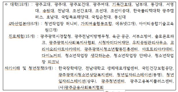 한편 광주시는 5개 자치구 학교밖청소년지원센터와 함께 상담, 학습 지원, 진로 지원, 건강검진, 자기계발 활동 등 다양한 서비스를 제공하고 있다. 자세한 내용은 누리집(www.flyyouth.or.kr) 또는 전화(062-376-1324)로 문의하면 된다.