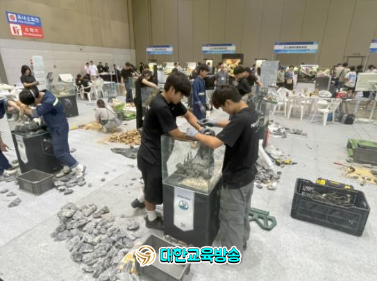 성산고 해양산업과 학생들은 2명이 한 팀을 이루어 총 2개 팀이 출전했으며 수석·유목·수초 등이 비치된 현장에서 개인 도구를 활용해 5시간 동안 2자 크기(60×45×45cm) 수조에‘우리나라 자연 경관’을 주제로 작품을 제작했다.