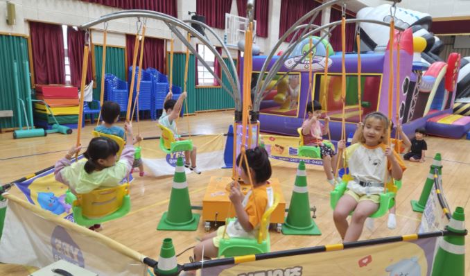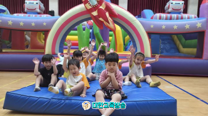 특히 도심과 농촌지역 유아들이 학교 강당에 설치된 에어바운스 미끄럼, 미니 자동차, 미니 회전목마 등 여러 놀이기구를 함께 타며 즐거운 시간을 보냈다.