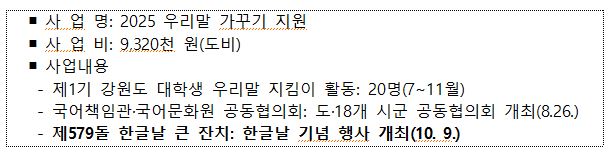 최병갑 강원특별자치도 문화예술과장은 “강원대학교 한국어문화원과 협력해 한글날의 의미를 되새기고, 우리말의 가치를 도민과 세계인에게 널리 알릴 수 있도록 하겠다”고 밝혔다.