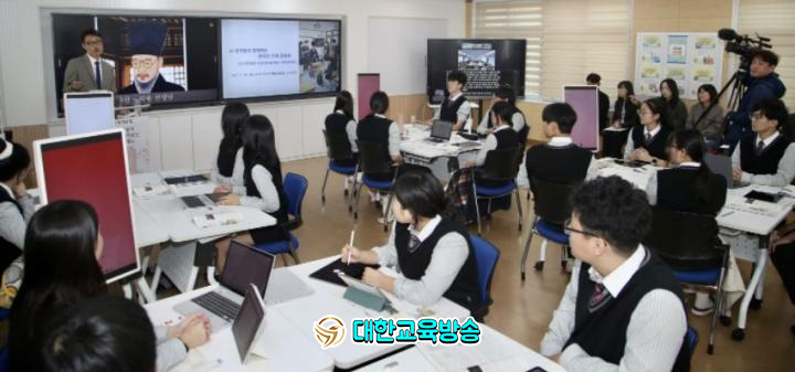 수업은 조선 후기 실학자 다산 정약용의 사상을 오늘날의 지방자치제도와 연결해, 학생들이 민주주의의 의미와 시민의 역할을 탐구하도록 설계된 통합사회·정치와 법 융합 프로젝트 수업이다. 학생들은 AI 기술을 활용해 구현된 가상의 ‘AI 정약용’과 마주 앉아 대화를 주고받으며, 민주주의와 지방자치, 시민의 역할을 탐구했다.