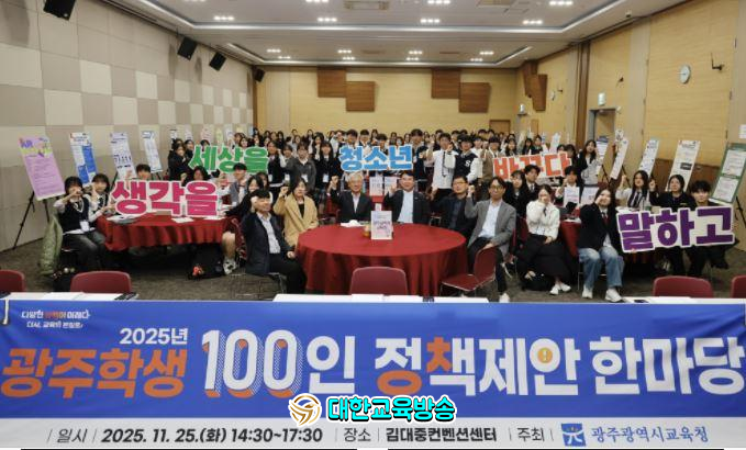 광주시교육청(교육감 이정선)은 25일 김대중컨벤션센터 중소회의실에서 23개 팀 100여 명의 고등학생이 참여한 가운데 ‘2025 광주 학생 100인 정책제안 한마당’을 개최했다.