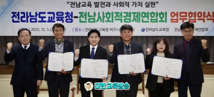 전남교육청은 이번 협약을 계기로 지역에서 활동하는 전남사회적경제연합회가 교육의 동반자로서 학생들이 지역에서 배우고 성장할 수 있는 협력 모델이 되기를 기대한다.