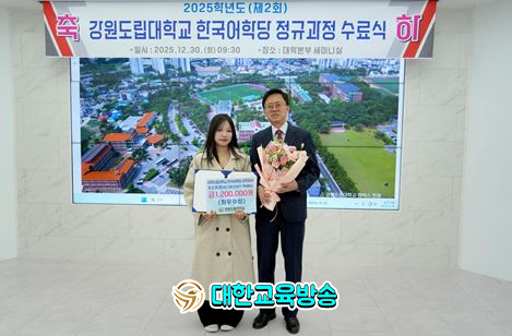 수료증 수여와 함께 진행된 시상식에서는 최우수상(전체 수석) 수상자인 호 티 튀 짱(HO THI THUY TRANG, 베트남)에게 상장과 장학증서가 전달됐다. TOPIK 4급을 취득하고 2026학년도 호텔관광과 입학 예정인 그는 “한국어학당에서의 학습과 경험이 꿈을 향한 든든한 밑거름이 됐다”며, “앞으로 배운 한국어와 한국 문화를 바탕으로 학업과 진로에 최선을 다하겠다”고 소감을 밝혔다.