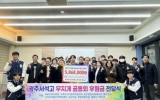광주·전남권 곽옥인 기자2024. 12.27[대한교육방송] 광주서석고 학생들이 매달 1천원을 모아 지역사회에 나눔을 실천해 연말 훈훈한 감동을 주고 있다. 광주서석고등학교 무지개공동회 봉사단은 지난 26일 본교 창의융합교실에서 자매결연을 맺은 ‘세실리아요양원’, ‘그루터기 다문화지원센터’, ‘평강의 집’, ‘영광 복음의 집’, ‘엠마우스복지관, 성심의 집, 고려인마을 지역아동센터, 쌍촌 종합 복지관 등 총 8개 사회복지시설·단체에 후원금과 물품을 전달했다. 이번 후원금과 생필품은 광주서석고의 ‘나눔 전통’을 잇고 있는 ‘무지개공동회 봉사단’의 모금활동을 통해 마련…