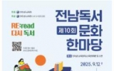행정부처 윤은상 편집국장2025. 09.10[대한교육방송] 전라남도교육청(교육감 김대중)은 9월 12일부터 27일까지 3주간, 전남 지역 공공도서관과 교육문화회관, 평생교육관 등 22개 기관에서 ‘제10회 전남독서문화한마당’을 개최한다. ‘RE: read, 다시 독서’를 주제로 한 이번 한마당 행사에는 온 가족이 즐길 수 있는 공연과 인문학 강연, 재미난 체험 프로그램이 풍성하다. 축제의 문은 9월 12일 목포도서관 평화광장에서 펼쳐지는 김창완 밴드 공연으로 힘차게 열린다. 다음 날인 13일에는 어린이 버블쇼와 샌드아트 체험이 마련돼 가족 단위 관객의 발길을 …